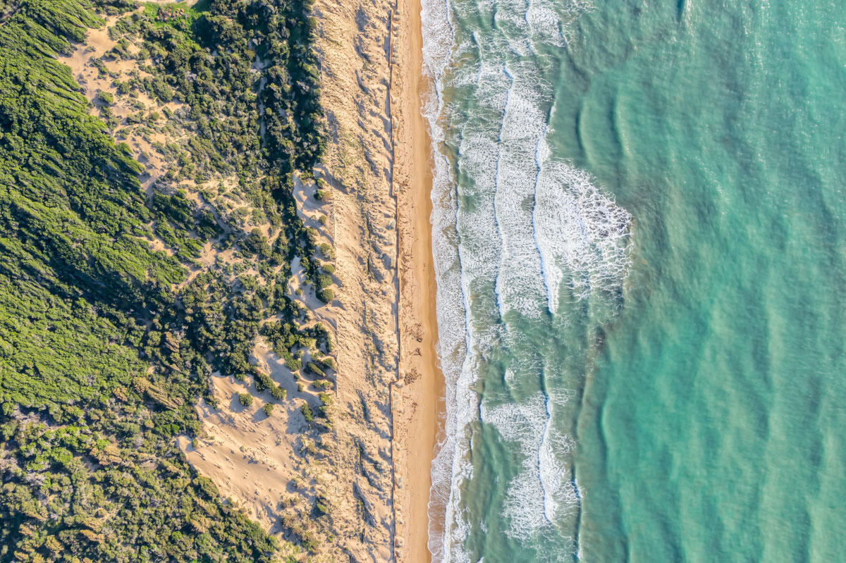 Panoramic view of Isola Bella coastline, with volcano Etna at the end of the scene.